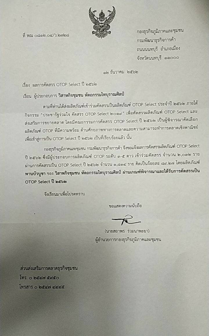 ยินดีต้อนรับ ทุกท่านเข้าสู่ร้านค้า วิสาหกิจชุมชนหัตถกรรมไทบุราณศิลป์ ผลิตภัณฑ์ชุมชนที่ได้รับการรับรองมาตรฐานผลิตภัณฑ์ชุมชน (มผช.) จากสำนักมาตรฐานผลิตภัณฑ์ชุมชน กระทรวงอุตสาหกรรม จดทะเบียนวิสาหกิจชุมชนกับกระทรวงเกษตรและสหกรณ์การเกษตรในปี 2552 เข้าคัดสรรผลิตภัณฑ์ OTOP ระดับ 3 ดาวในปี 2559 จาก กรมการพัฒนาชุมชน กระทรวงมหาดไทย ได้รับมาตรฐานบางกอกแบรนด์ระดับเหรียญทอง ในปี 2560 จากกรุงเทพมหานคร และ ได้รับการรคัดสรรเป็น OTOP Select ปี 2562 จากกระทรวงพาณิชย์